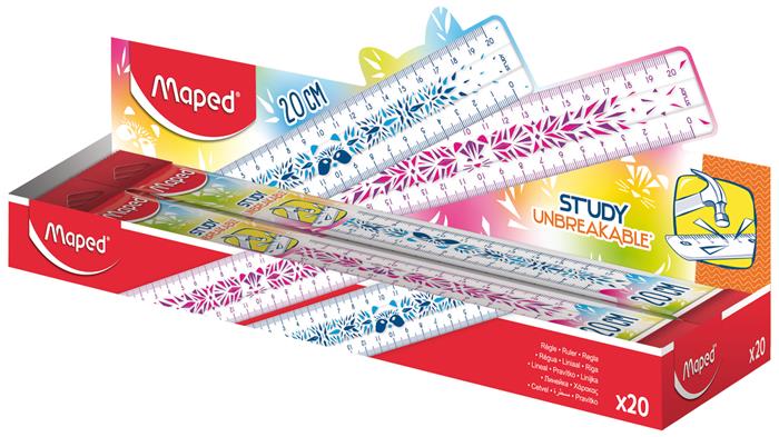 Vonalzó, műanyag, törhetetlen, 20 cm, MAPED "Study Unbreakable Fancy", vegyes színek