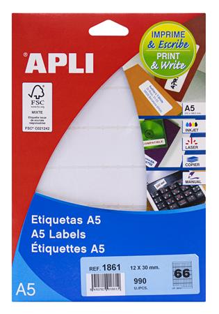 Etikett, 12x30 mm, kerekített sarkú, A5 hordozón, APLI, 990 etikett/csomag
