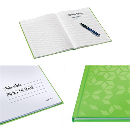 Beíró, A4, kockás, 80 lap, keményfedeles, LEITZ "Wow", zöld