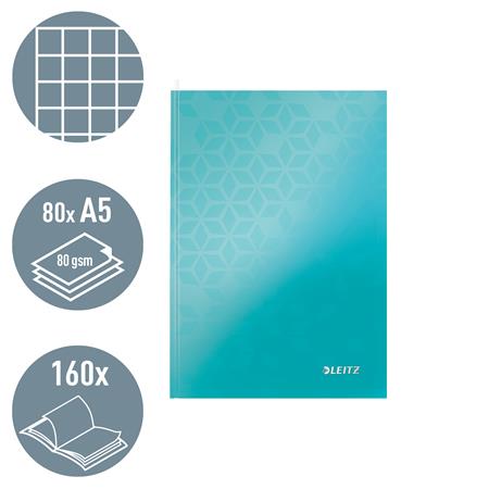 Beíró, A5, kockás, 80 lap, keményfedeles, LEITZ "Wow", jégkék
