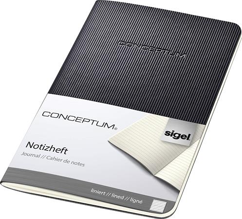 Füzet, exkluzív, A6, vonalas, 32 lap, puhafedeles, SIGEL "Conceptum", fekete