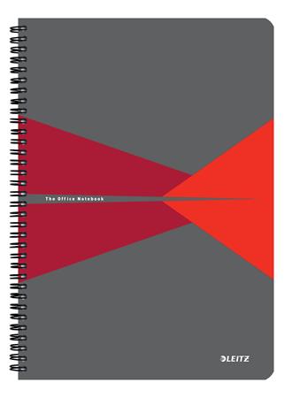 Spirálfüzet, A4, kockás, 90 lap, laminált karton borító, LEITZ "Office", szürke-piros