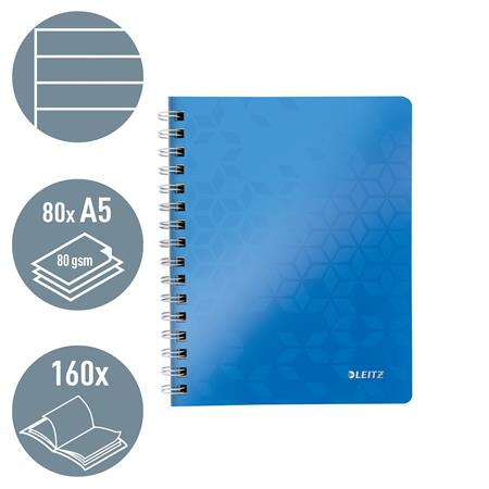Spirálfüzet, A5, vonalas, 80 lap, LEITZ "Wow", kék