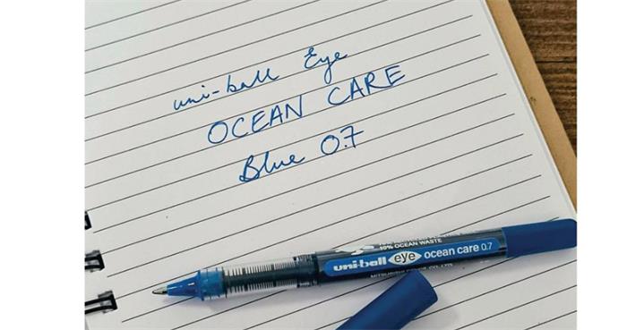 Fedezze fel az új Uni Eye Ocean Care roller tollat. A környezetbarát toll újrahasznosított műanyagból készül, amelynek egy része közvetlenül az óceánból származik.