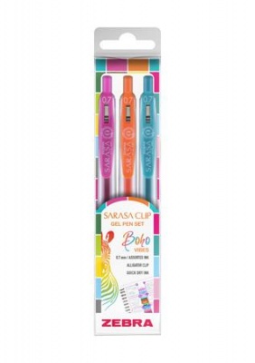 Zseléstoll készlet, 0,33 mm, nyomógombos, ZEBRA "Sarasa Clip Boho Vibes", 3 különböző szín