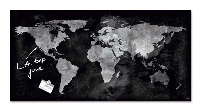 Mágneses üvegtábla, Világtérképpel, 46x91 cm, SIGEL "Artverum® ", fekete