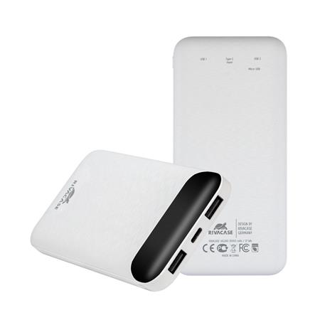 Hordozható akkumulátor, 10000mAh, RIVACASE "VA2240", fehér