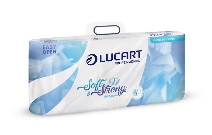 A Lucart Strong 10 kistekercses toalettpapírok jó nedvszívó képességgel rendelkeznek és kellően puha tapintásúak