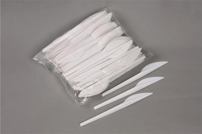 Fehér, műanyag eldobható kés, kerti partik, büfék és fesztiválok elengedhetetlen kelléke.