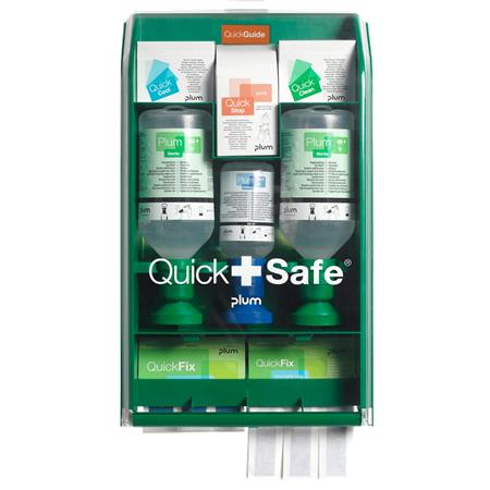 QuickSafe® Food Industry elsősegély állomás kimondottan élelmiszeripari cégek számára. Ezt az állomást olyan termékekkel töltöttük meg, melyek az élelmiszeriparban nélkülözhetetlenek. Az átlátszó fedélnek köszönhetően az utántöltés szükségessége könnyen nyomon követhető.