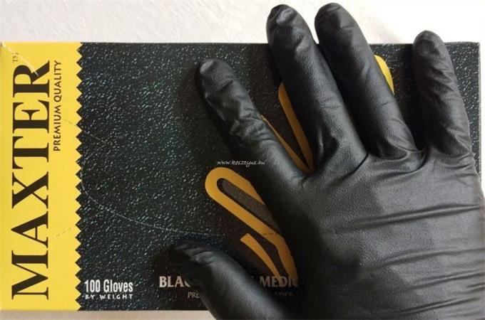 Védőkesztyű, egyszer használatos, nitril, XL méret, 100 db, púder nélküli, fekete